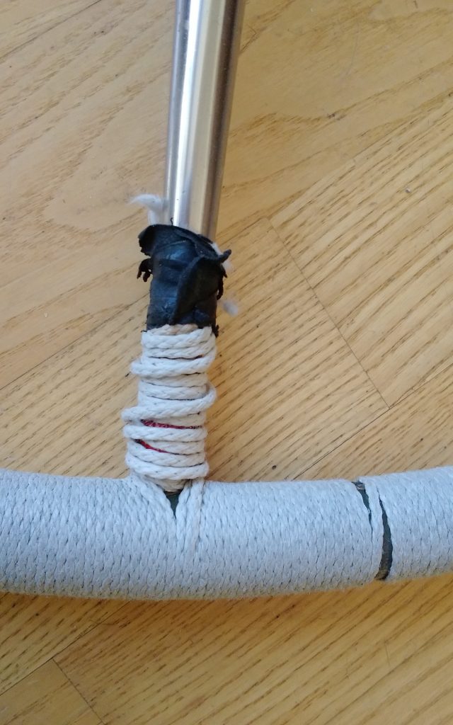 Eine Menge Recherche und Gespräche über Materialien, wichtige Eigenschaften eines Bezuges und Haptik folgten. Und schließlich – wichtig – probierten wir aus. In einer Seilerei sichteten wir unterschiedliche Seile, Dicken, Farben, wir rechneten und befühlten bis wir uns zu einer Probebestellung entscheiden konnten.